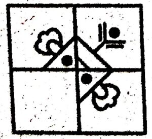 प्रश्न चित्र के रूप में ज्यामितीय चित्र ( वर्ग, वृत्त, त्रिभुज ) के एक भाग को बाई ओर दर्शाया गया है| उत्तर चित्रों से ज्यामितीय चित्र को पूर्ण करने वाले चित्र को ज्ञात करें